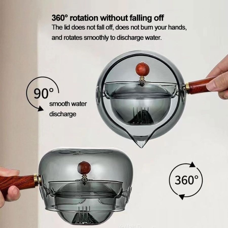 ¿Cansado de tés sin sabor o de teteras complicadas? 😩 Esta tetera giratoria semiautomática de vidrio borosilicato te cambiará la vida. ✨